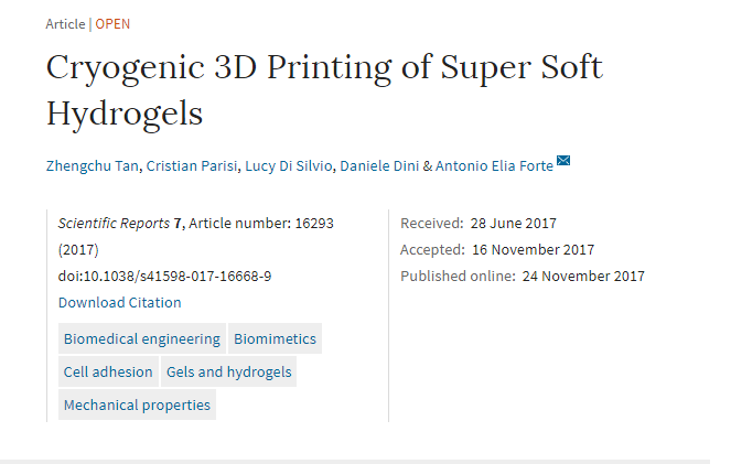 研究人员之一Antonio Elia Forte博士表示:低温技术是这项技术的一个创新点,它利用液体和固体之间的相变触发聚合反应,并创造出能够保持其形状的超软物体。